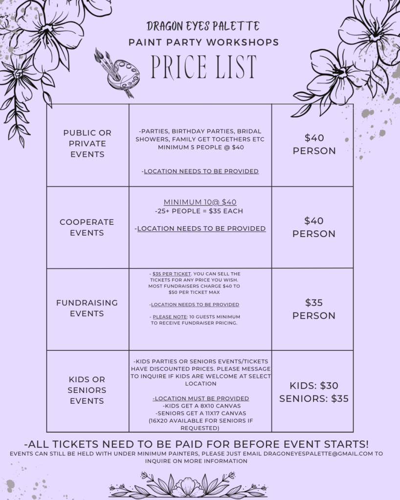 Paint Party Workshop Prices